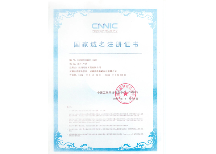 国家域名注册证书
